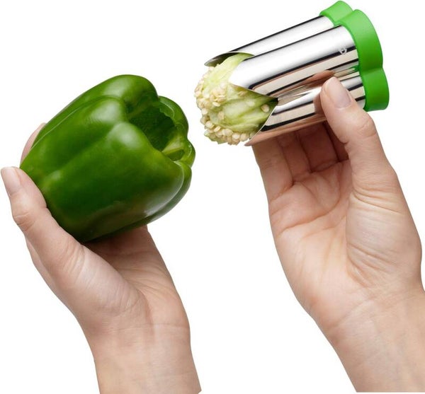 - PERFECT TOOL FOR THE JOB: Simply twist the QuickCore Pepper Corer into any bell pepper and pull to remove it. Out come the stems, cores, and seeds in one easy movement!