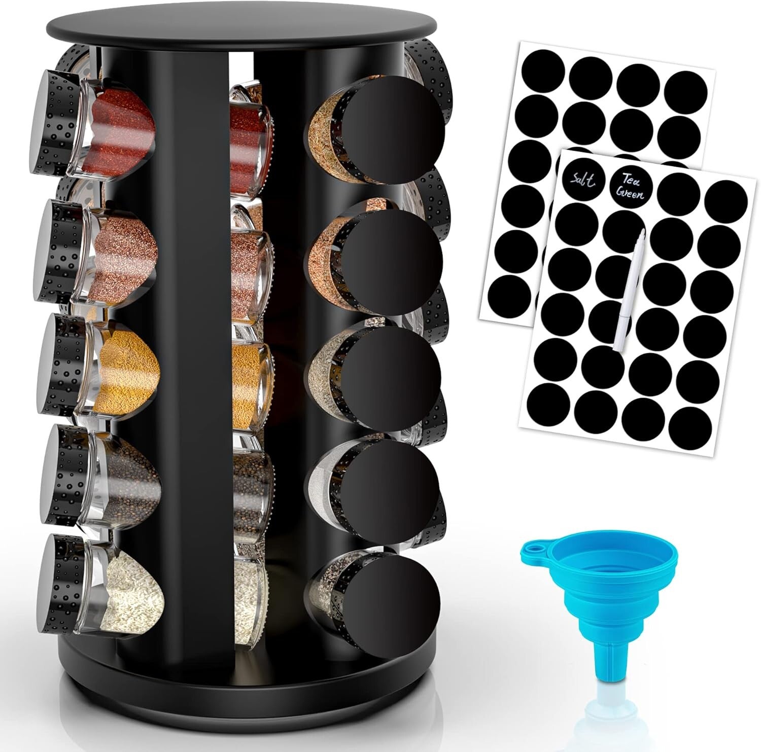 - 【Quick Access】If you need to store existing scattered spices neatly in the kitchen, you're going to need this space-saving seasoning organizer. It's revolving and it keeps 20 of the most common spices at your fingertips, so you can retrieve the correct spice every time.