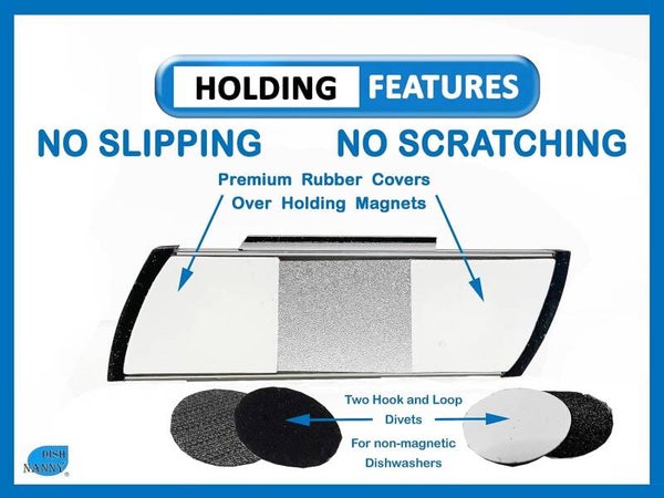- STAYS IN PLACE with the strong industrial magnets and no scratch pads on the back, this sign will not move around your dish washer (however, some stainless steel dishwashers have nickel and aluminum in them and thus are not magnetic, so we include as an alternative two strong 3M tabs to attach your sign)